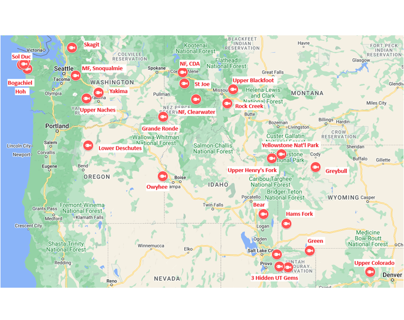I offer 30 exceptional rivers across WA, ID, OR, MT, UT, CO and WY... and a 25% discount for the entire order, to those buying 3 or more self-guided fly fishing experiences at once.